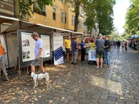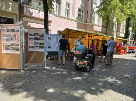 Viele Besuchende zeigten ihr Interesse an den Informationen zum Sanierungsgeschehen, haben sich die Plakate aufmerksam angeschaut und zahlreiche Fragen gestellt. Die Rückmeldungen waren positiv, und es wurden die Infos dankend entgegengenommen. Neben dem Sanierungsgeschehen interessierten sich viele auch für die Arbeit der AG Geschichte und Geschichten. Mit großer Freude wurden die Broschüren Pichelsdorfer Straße, Meine Kindheit, Tagebuch und Wilhelmstraße 3 erworben. Falls Sie nicht dabei sein konnten und sich für die Broschüren der AG oder das Sanierungsgeschehen interessieren, kommen Sie gerne im Stadtteilladen vorbei. Die Broschüren sind dort für 1 Euro erhältlich.