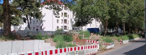 Einige kleinteilige Pflasterarbeiten sind noch fertigzustellen, z. B. an den Gehwegköpfen Ecke Weverstraße.