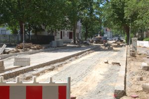 Bei den Arbeiten im zweiten Bauabschnitt zwischen Wörther Straße und Götelstraße ist es auf der Südseite zu Baumfällungen gekommen, die in der Planung nicht vorgesehen waren. Grund hierfür sind Probleme mit der Standfestigkeit, die bei dem Abbau der Bordsteine und der Begutachtung der Wurzeln festgestellt wurden. Dies hat zu der Entscheidung der Fällung und Neupflanzung geführt.
