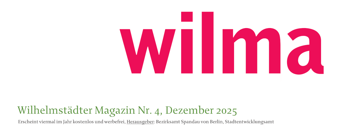 Die aktuelle Ausgabe des Wilhelmstädter Magazins ‚wilma‘ Nr. 4 Dezember 2025 ist gerade erschienen und wird wie immer an den bekannten Stellen ausgelegt!